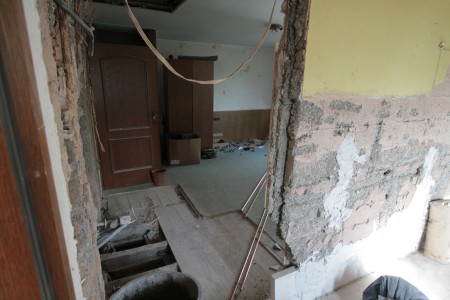Hiervoor zou de oude badkamer van kamer 2 en het gehele interieur van kamer 1 gesloopt moeten worden.