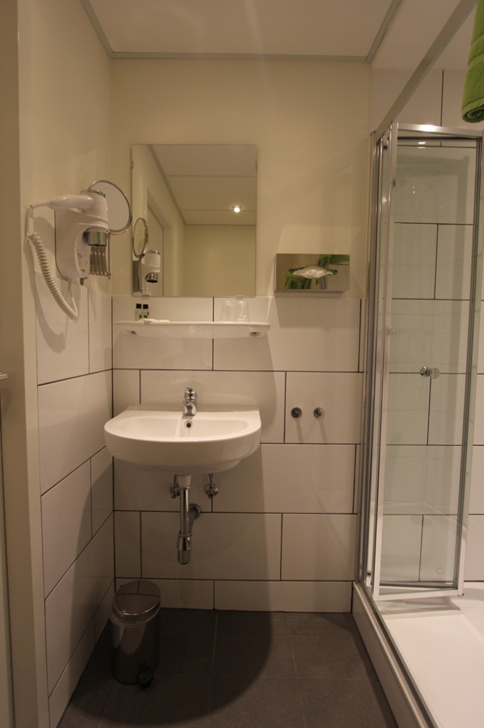 Alles zat er nog in. Een douche, een badkuip en een dames en een heren toilet. Deze kamer noemen we voor het gemak kamer 1.